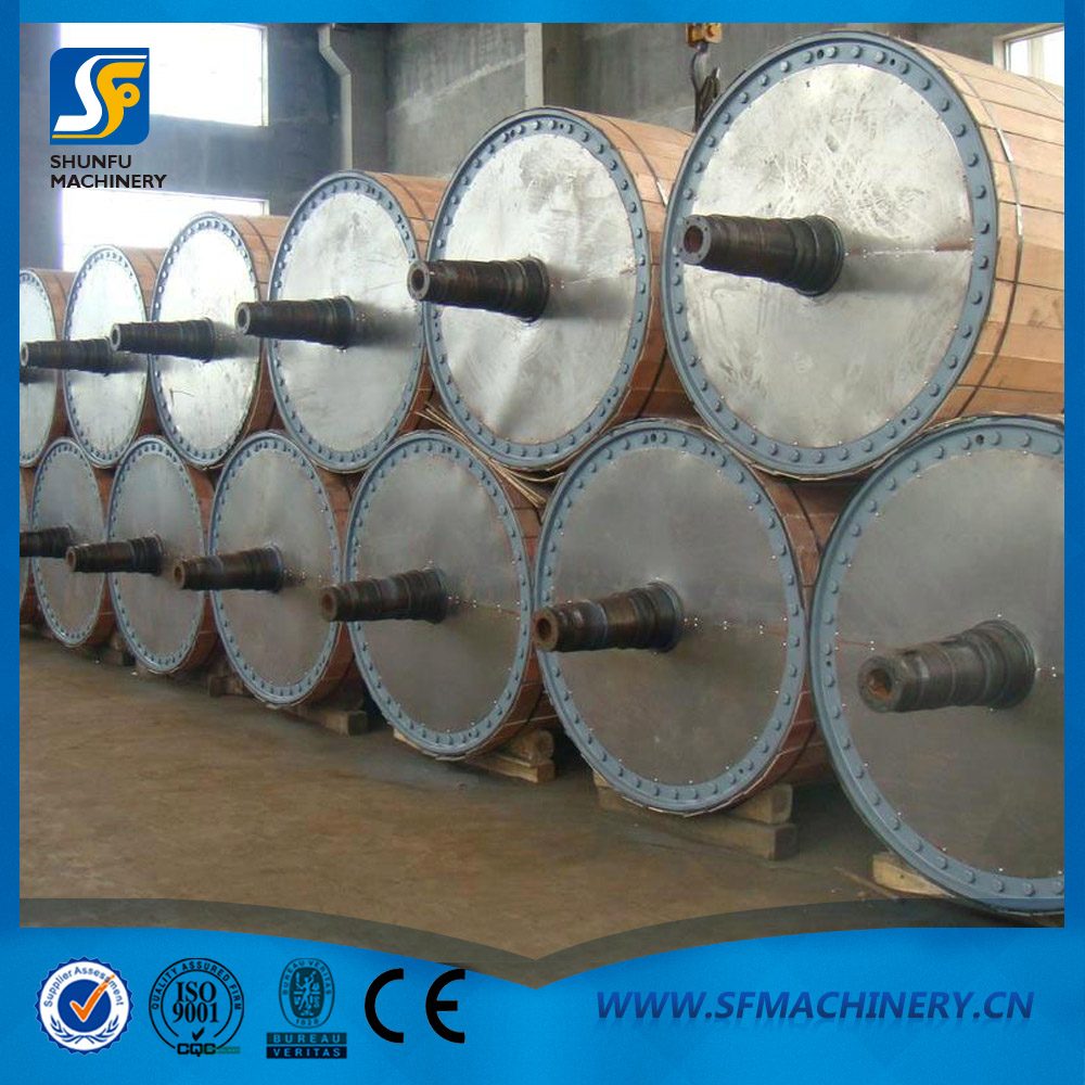 烘缸是用鑄鐵制成的兩端有蓋的空心圓筒,由缸體及其兩端的缸蓋組成,外徑多為1000~3000mm,在運(yùn)轉(zhuǎn)過程中,內(nèi)通蒸汽將輸送的紙張烘干燙光。